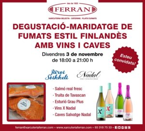 A Xarcuteria Ferran ja ens estem preparant pel Nadal i, per això, la nostra degustació de novembre tindrà un especial gust nadalenc amb accent finlandès, ja que gaudirem dels deliciosos productes fumats de Järvi Soikkeli.