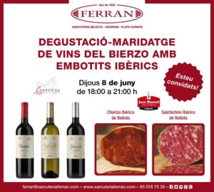 Ja tenim llesta la degustació del mes de juny. Us tenim preparat un deliciós maridatge de vins del Bierzo amb embotits ibèrics, perquè pugueu gaudir dels millors sabors gourmet. La degustació serà el proper dijous 8 de juny de 18h a 21h a Xarcuteria Ferran.