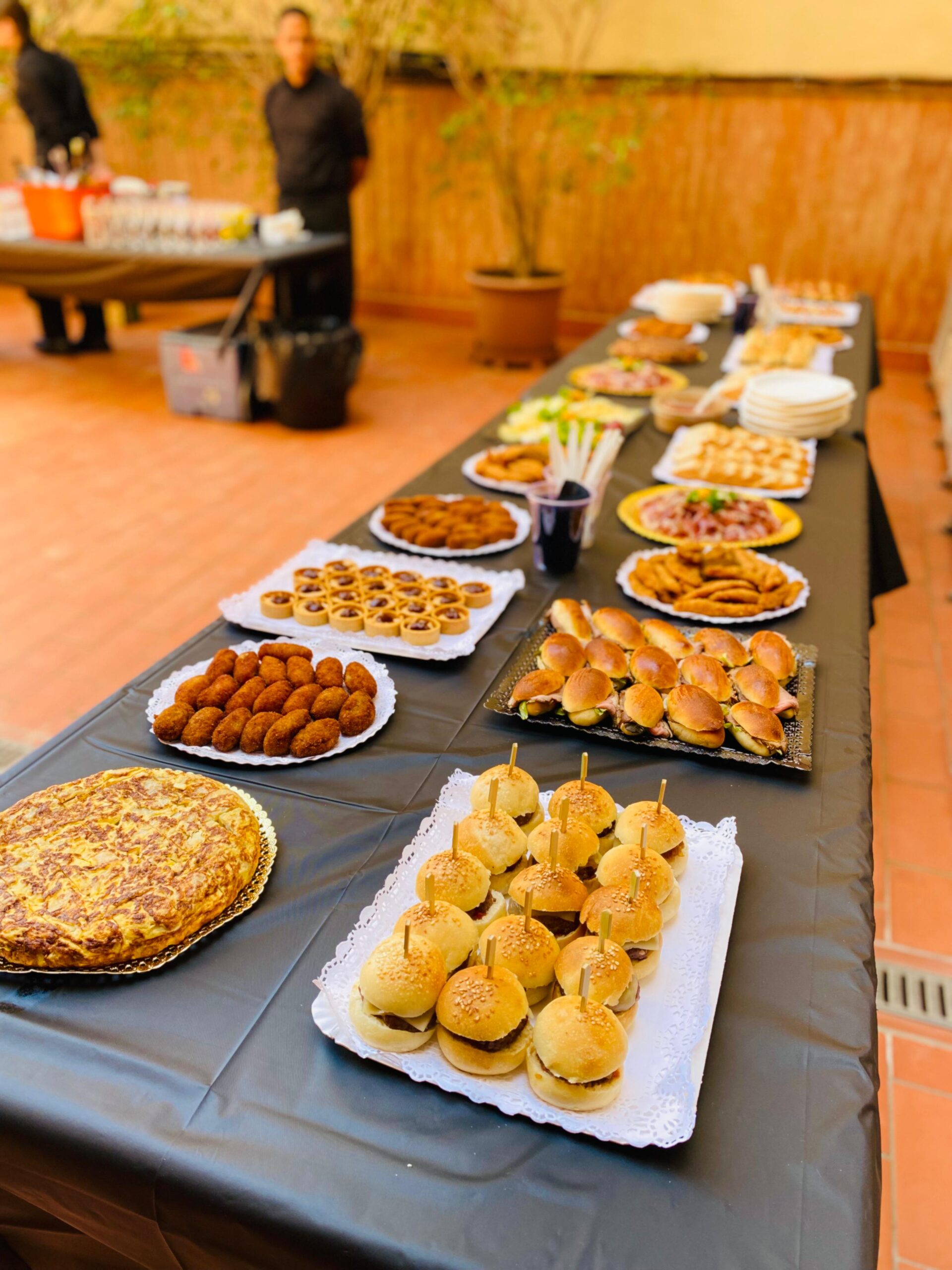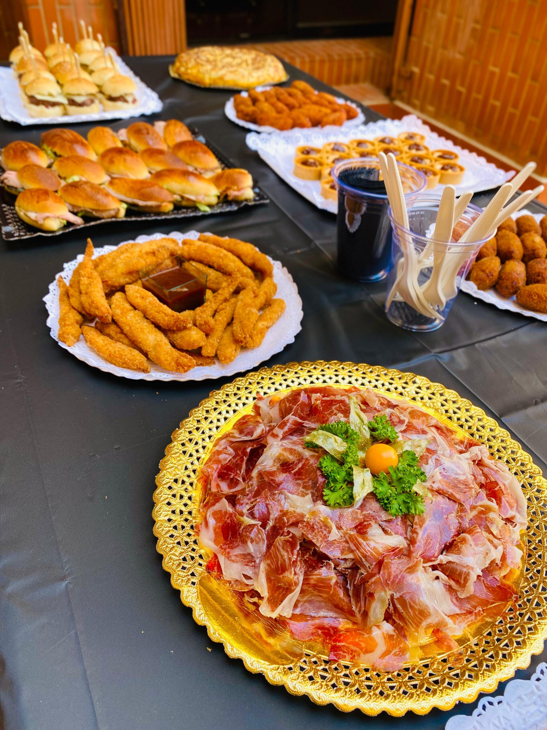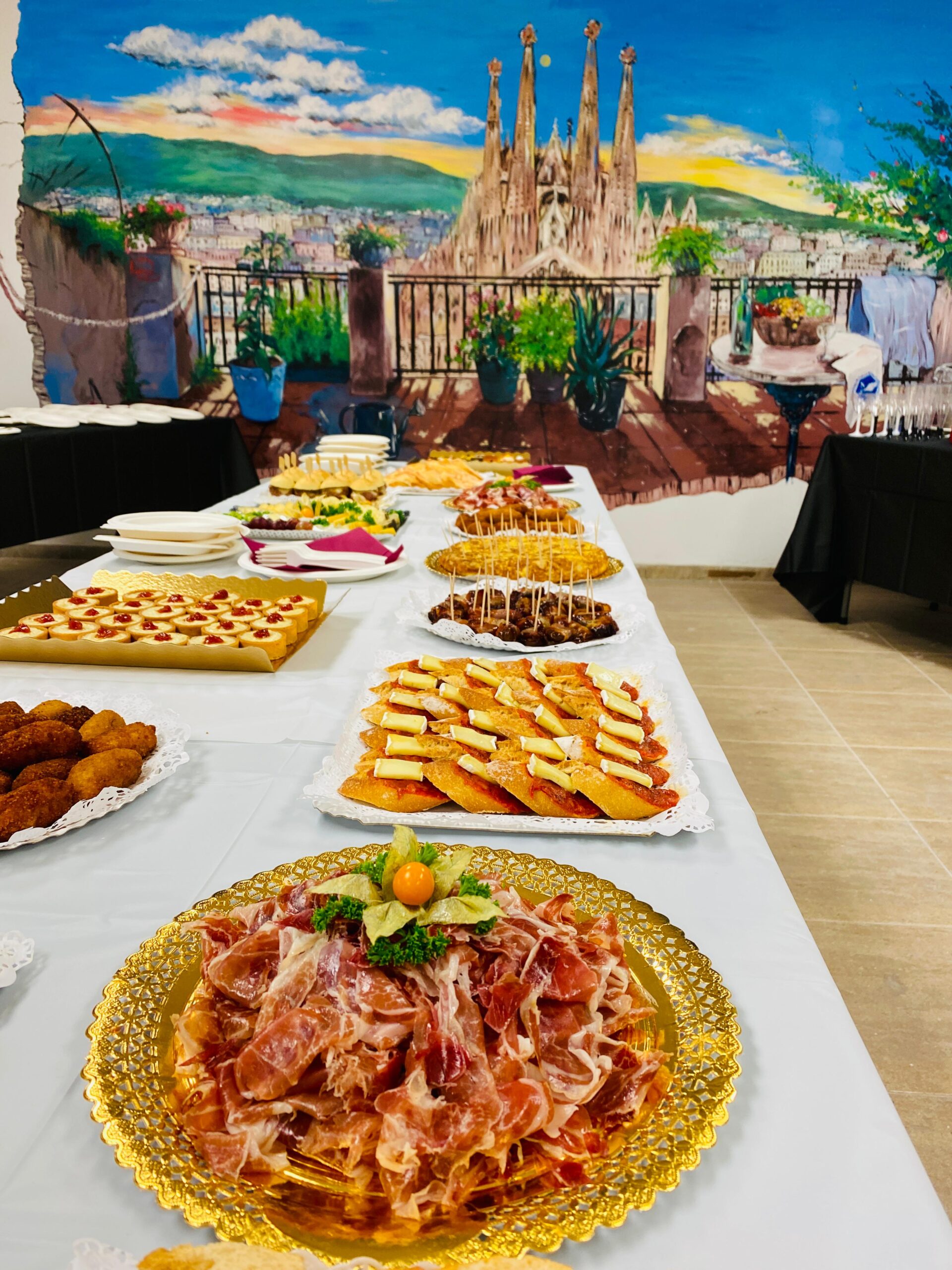 Si lo que necesitas es un montaje sencillo pero bonito, sin florituras, donde lo que destaque sea la comida, esta es tu opción. Si lo deseas, podemos incluir también todo el menaje desechable necesario y añadir las bebidas que quieras. Dinos qué necesitas y te pasaremos presupuesto sin compromiso.