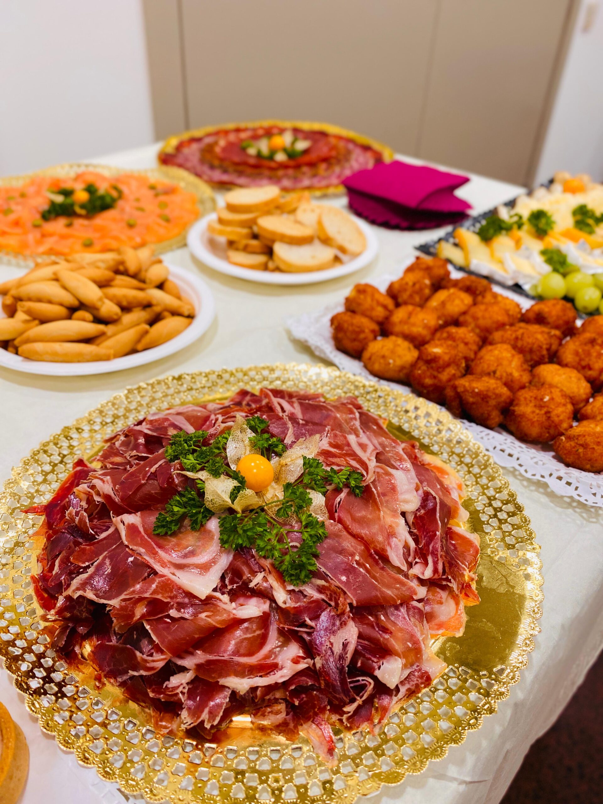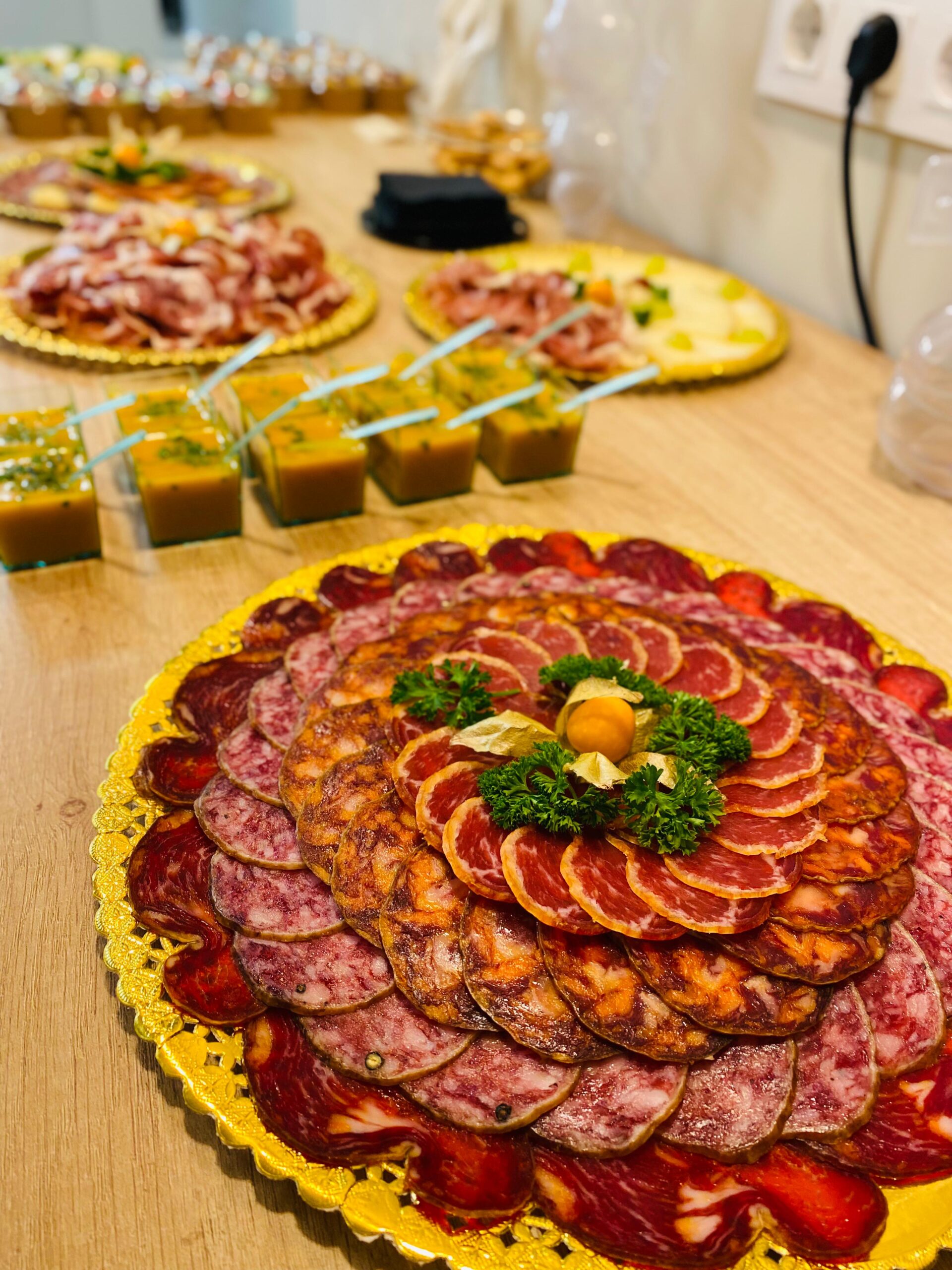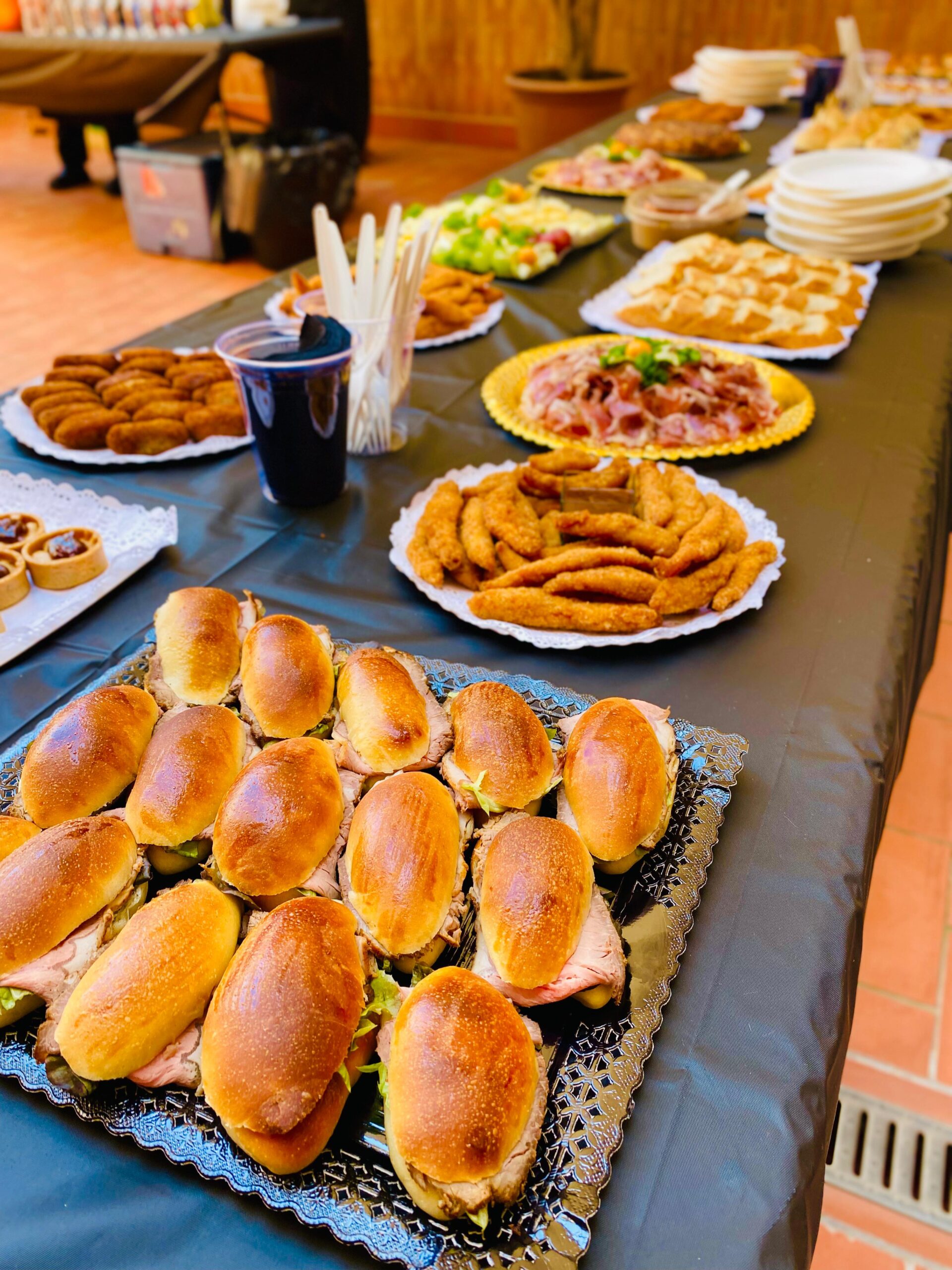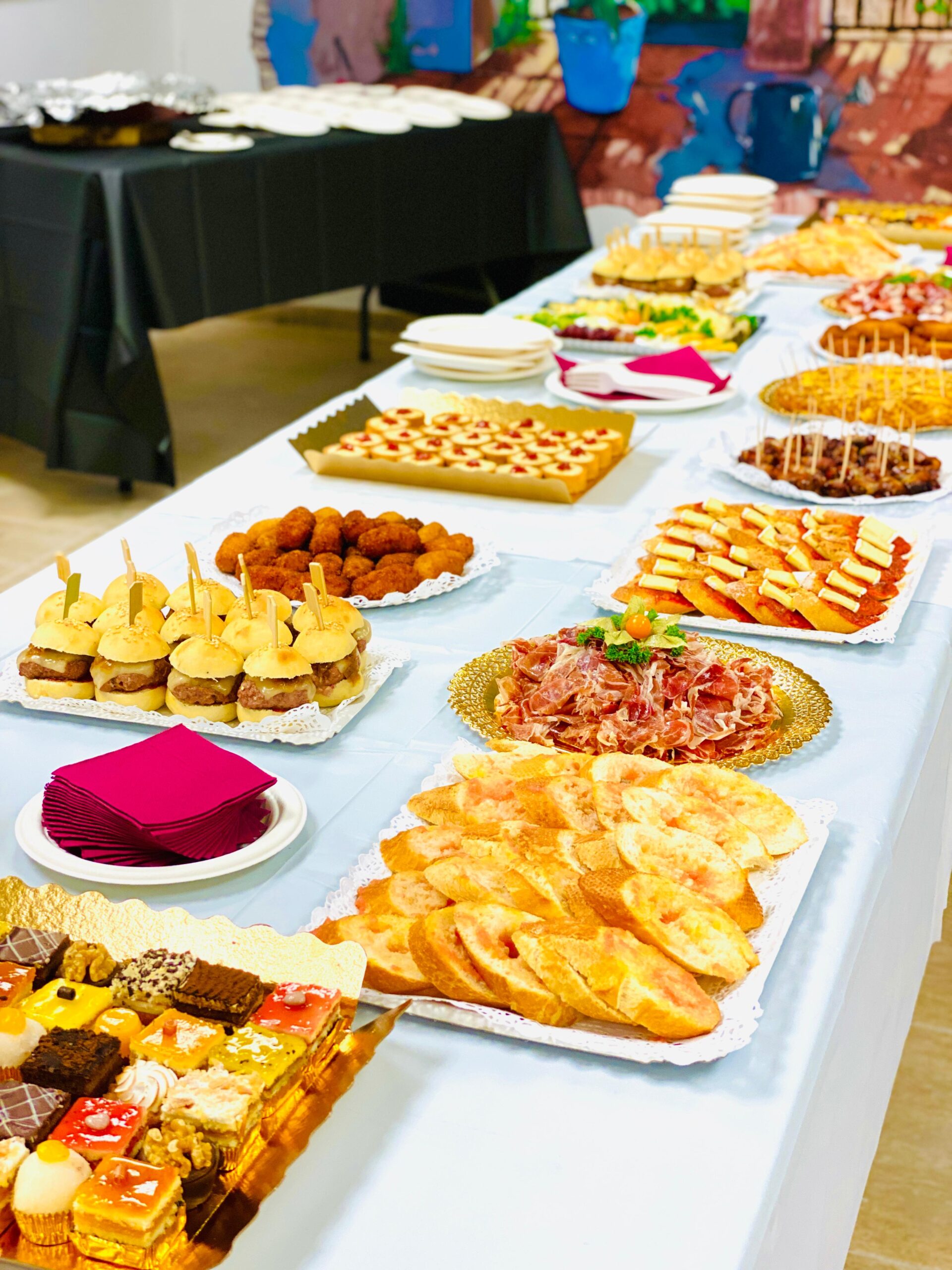 Si lo que necesitas es un montaje sencillo pero bonito, sin florituras, donde lo que destaque sea la comida, esta es tu opción. Si lo deseas, podemos incluir también todo el menaje desechable necesario y añadir las bebidas que quieras. Dinos qué necesitas y te pasaremos presupuesto sin compromiso.