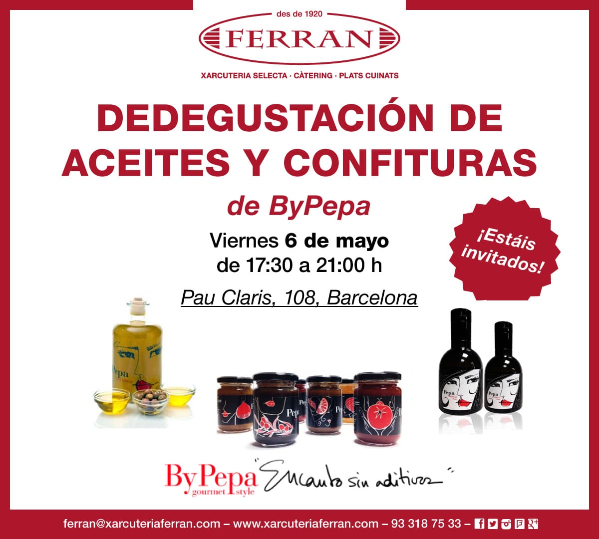 El próximo viernes 6 de mayo os vamos a ofrecer una degustación que estamos seguros os va a sorprender y os dejará con la boca abierta. Preparaos para degustar los aceites y confituras de By Pepa, productos de altísima calidad, selección gourmet, elaborados mediante procesos artesanales con una selección rigurosa de la materia prima. Son además productos únicos y personales porque se presentan en unos diseños únicos, atractivos, especiales y muy personales, igual que personal es la filosofía de By Pepa. En sus propias palabras “aroma, impulso, diseño, calidad, sabor…” Encanto sin aditivos.