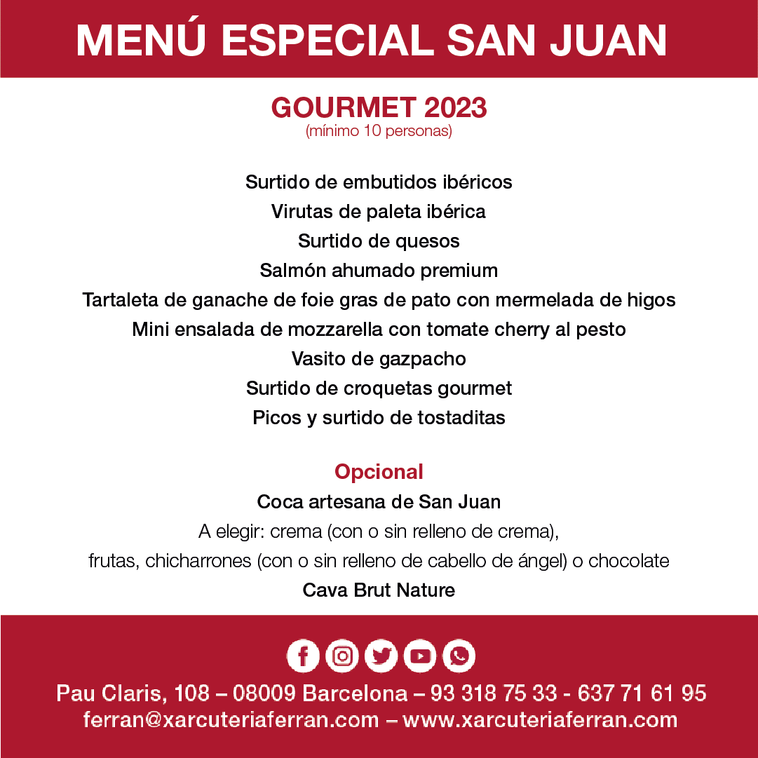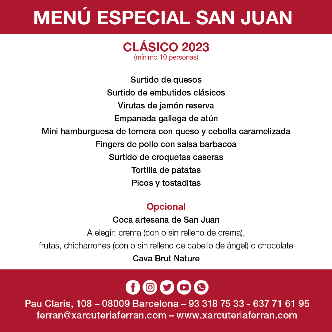 En San Juan, una de las festividades más esperadas de todo el año, nos reunimos con nuestra gente para hacer de la noche más corta del año, la más larga. ¿Y qué sería de una noche como esa si no la vestimos con unos buenos platos que deleiten el paladar? Ahí es donde entra Xarcuteria Ferran para ofrecer un catering especial que combina tradición, sabor y calidad. ¿Qué esperabais? ¡Este año tampoco fallamos y hemos preparado unos menús de Catering especial para San Juan!