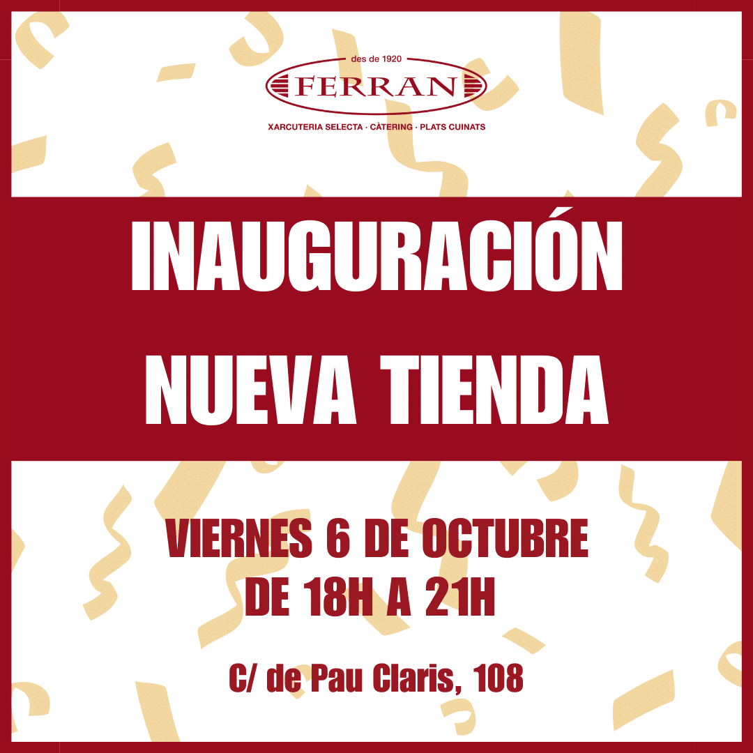 Recordad que no tendréis que desplazaros mucho de vuestra ruta que hacéis habitualmente para llegar a Xarcuteria Ferran, pues la nueva tienda está puerta con puerta con la tienda actual. Más fácil no os lo podemos poner.