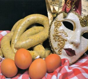 Eso es lo que se come cuando llega el Jueves Lardero. Deliciosas butifarras, especialmente las de huevo y tortillas de butifarra. Así que cuando llega esa fecha, los productos tradicionales con los que se hacen las comidas típicas son los huevos y la butifarra. Pero, además, hay otra delicia típica que comemos siempre ese jueves y es la riquísima coca de llardons (chicharrones).