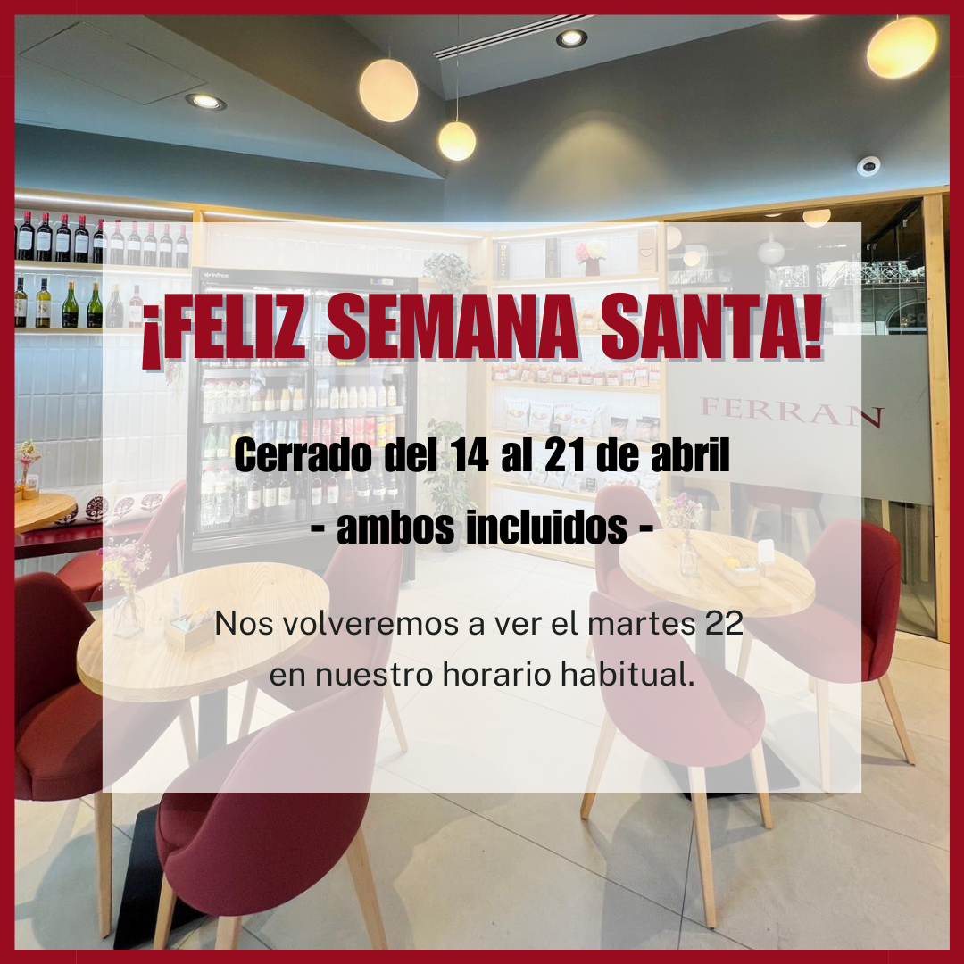 Este año, durante la Semana Santa, permaneceremos cerrados toda la semana para disfrutar de unos merecidos días de descanso ;)