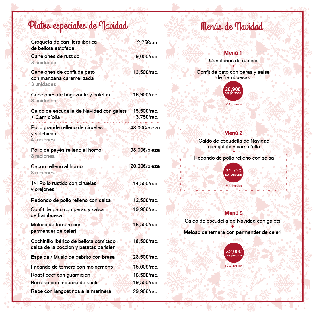 Echad un vistazo a nuestro listado de platos y menús especiales de Navidad y contactad con nosotros sin compromiso.